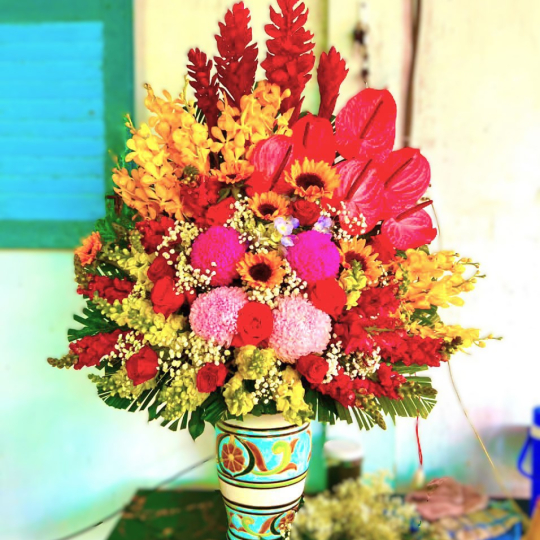 Đây là dòng sản phẩm cao cấp, phù hợp cho các lễ nghi lớn như cưới hỏi, đám giỗ đại tường, khai trương hoặc ngày kỷ niệm quan trọng. Bình hoa được kết tinh từ nhiều loại hoa nhập khẩu cao cấp như mẫu đơn, lan hồ điệp, hồng Ecuador, hoa sen đá... kết hợp nghệ thuật cắm hoa đẳng cấp, thể hiện sự sang trọng và lòng thành sâu sắc.